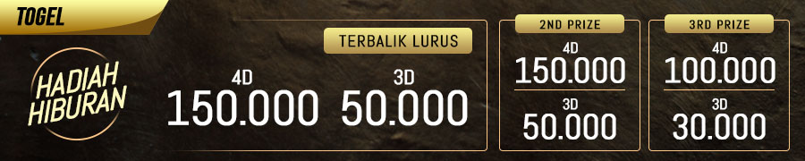 - Hadiah prize 2 : 4D = Rp. 150.000,- / 3D = Rp. 50.000,-